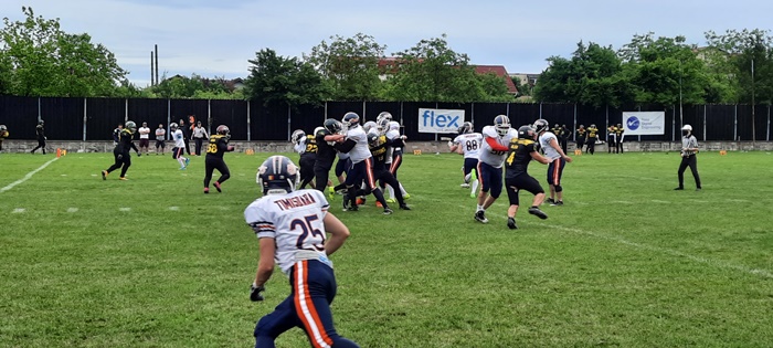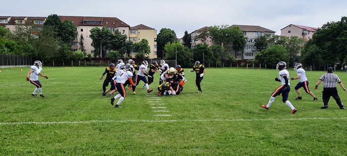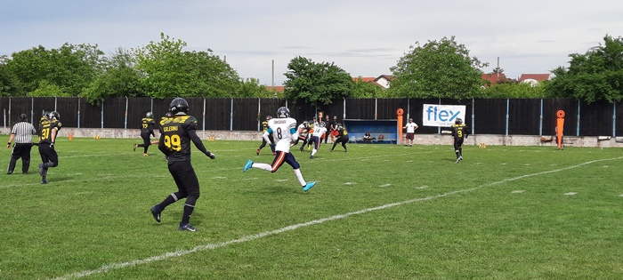 TIMISOARA. Pase lungi reusite, un touchdown dat dupa o alergare de aproape 90 de yarzi, interceptii spectaculoase, dar si fumble-uri recuperate de adversar. Toate au fost parte din duelul intre Timisoara 89ers si Bucharest Titans, incheiat cu victoria formatiei timisorene.