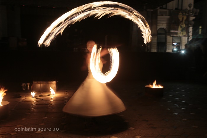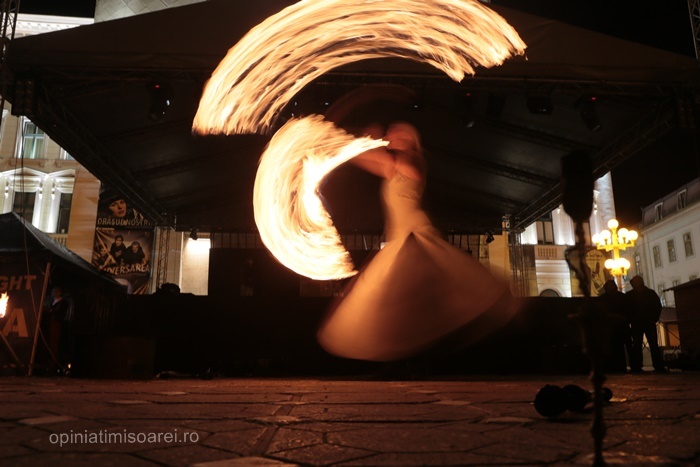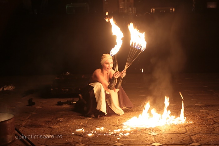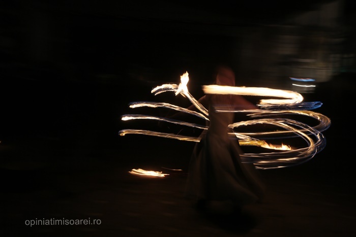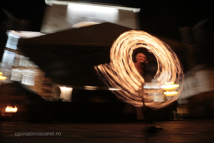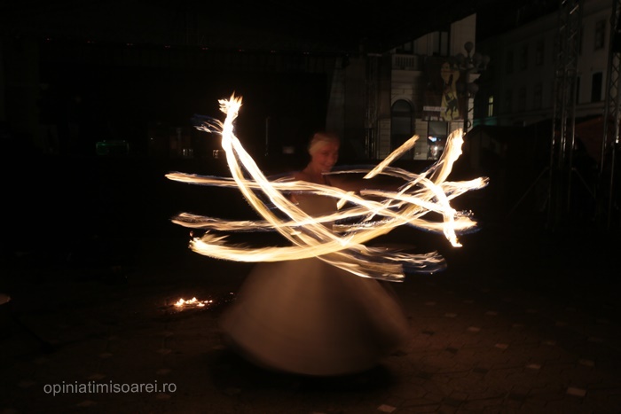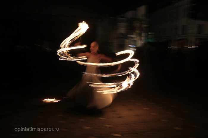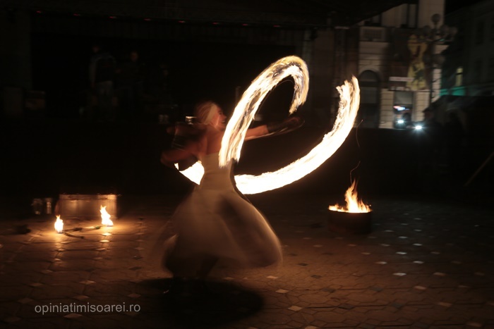 Evenimentul a inceput la ora 19.00 cu concerte sustinute de trupele Box Office si Pragu de Sus. Insa atractia serii au fost jongleriile cu foc. Artista de strada Raluca Ilas i-a incantat pe cei prezenti cu o serie de jonglerii pe cat de ingenioase pe atat de spectaculoase.