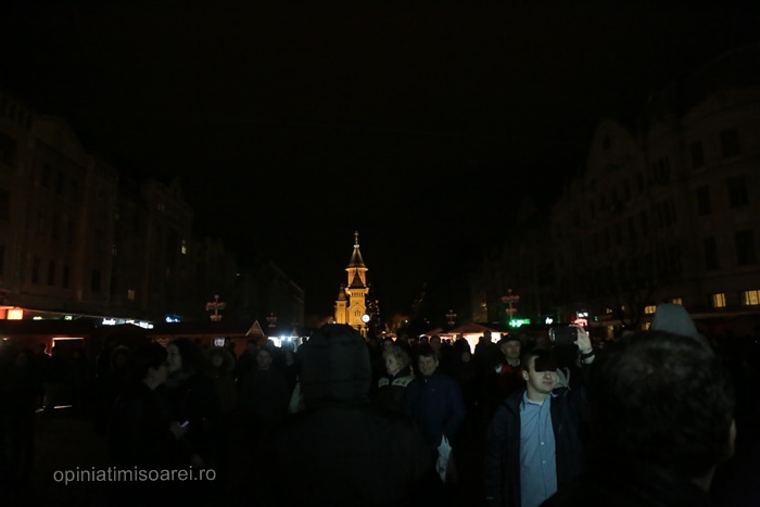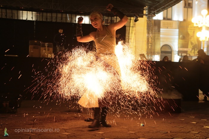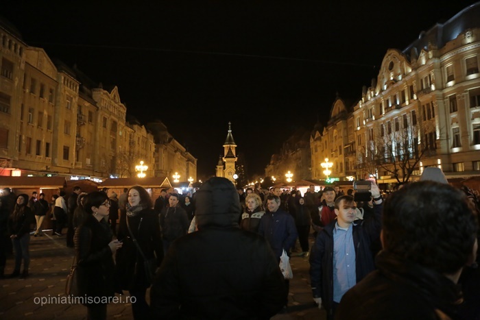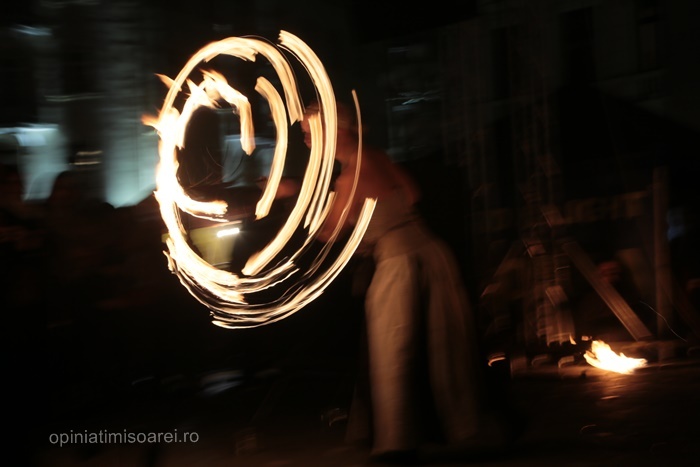 Ca si in alti ani, frigul i-a cam tinut in casa pe timisoreni, in ciuda faptului ca municipalitatea a organizat pentru ei un mic spectacol de torte, jonglerii cu foc si muzica.