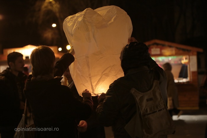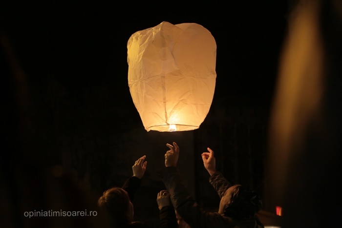 La orele 20.30, in Piata Victoriei s-au stins luminile, moment in care toate privirile s-au indreptat catre lampioanele inaltate pe cerul orasului. Pentru ca vremea n-a fost tocmai favorabila, observatiile astronomice planuite de organizatori n-au mai avut loc.