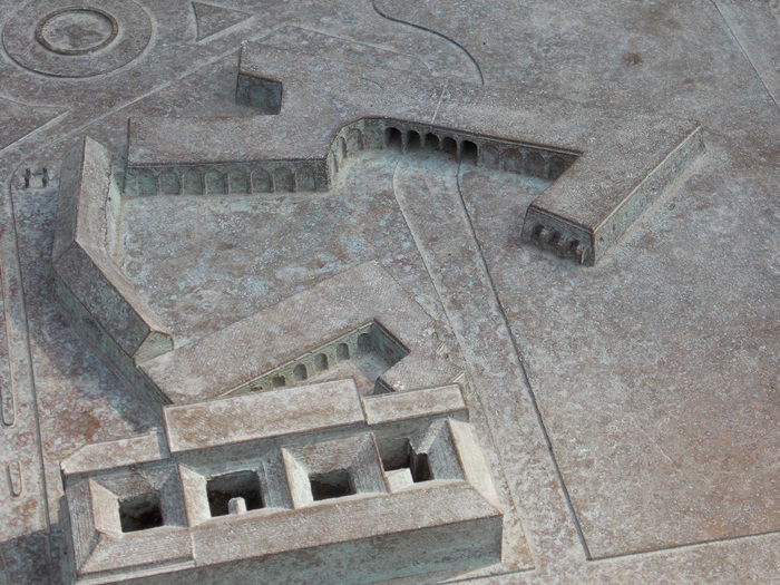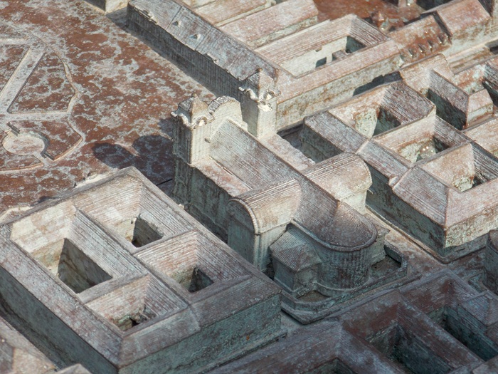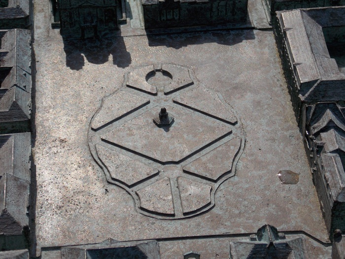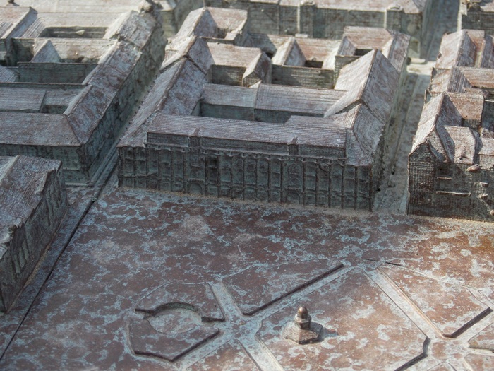 Pe macheta sunt reprezentate in amanunt si zona bastionului Therezia, intrarile in Palatul Dicasterial sau Fantana de la Punctele Cardinale.