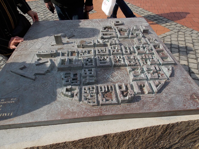 TIMISOARA. Timisoara are in sfarsit o harta a centrului istoric, la doua luni dupa ce soclul pe care avea sa fie asezata a fost adus in Piata Libertatii. Macheta e facuta din bronz, iar creatori sai au insistat pe detalii pentru a reliefa cladirile din zona istorica.