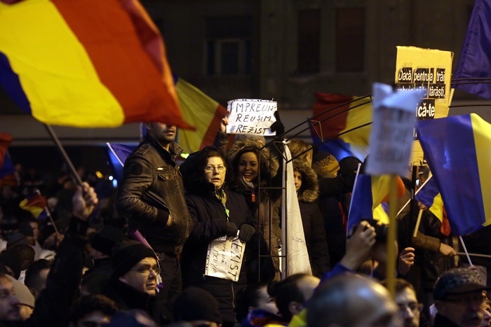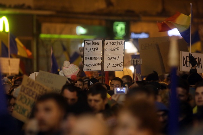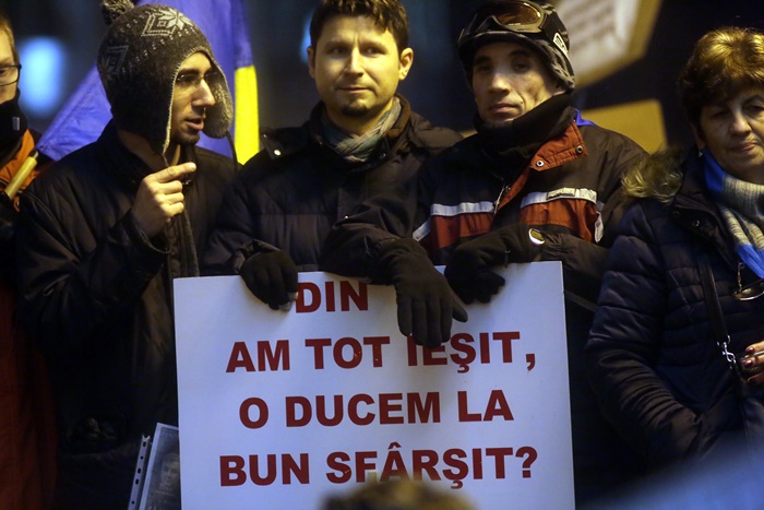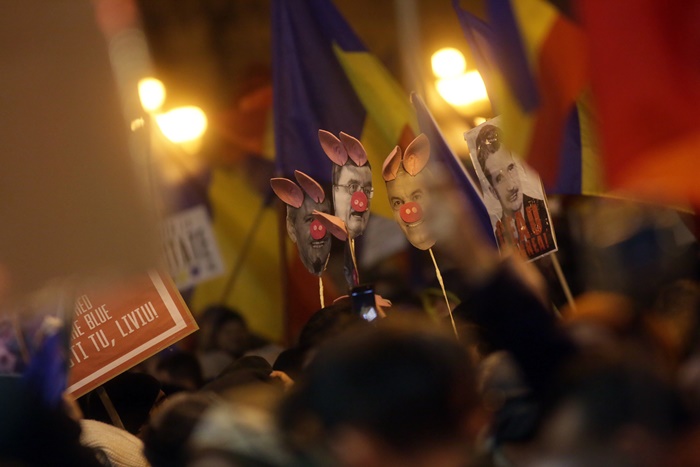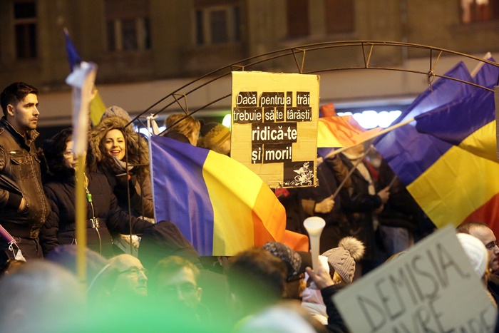 UPDATE: Organizatorii i-au anuntat pe cei care protesteaza ca premierul Sorin Grindeanu nu va demisiona din functie, iar ca reactie la acest anunt ei au strigat: “Grindeanu ai patat onoarea din Banat!“.