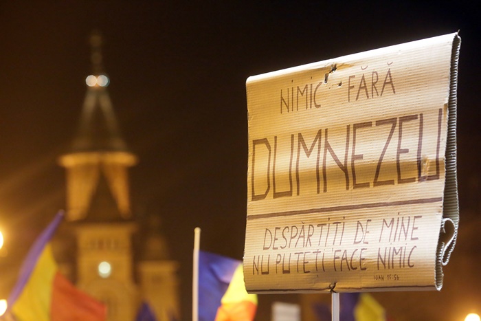 UPDATE: In Piata Operei din Timisoara cativa tineri au inceput sa rosteasca rugaciuni. Printre acestea, Tatal nostru.