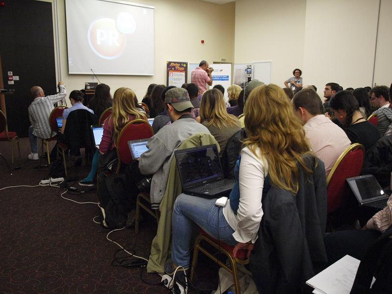 Discutiile au inceput cu PR-ul. Alina Crancau, Monica Jitariuc si Bogdana Butnar le-au povestit celor din sala despre matematica comunicarii online, ce inseamna brandul, google si cum se face cel mai bine PR cu ajutorul Internetului.