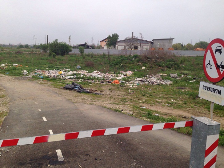 Mormane de gunoaie te intampina imediat dupa bariera, de-o parte si de alta a pistei de biciclete.