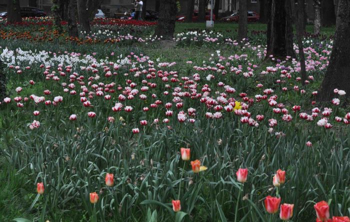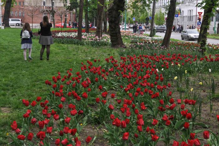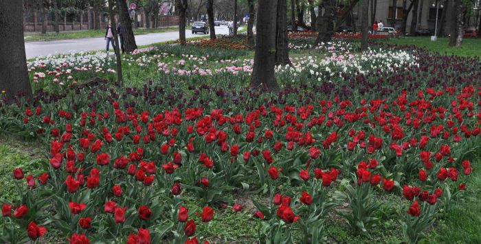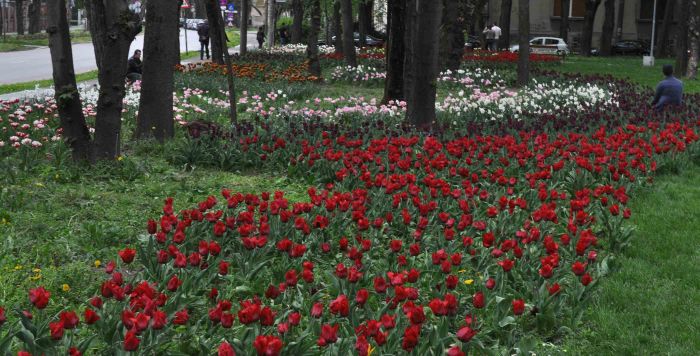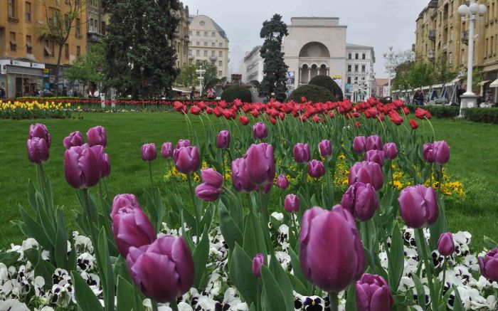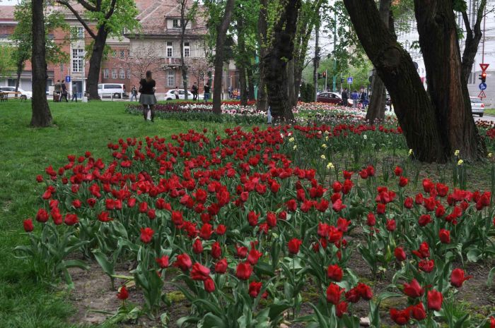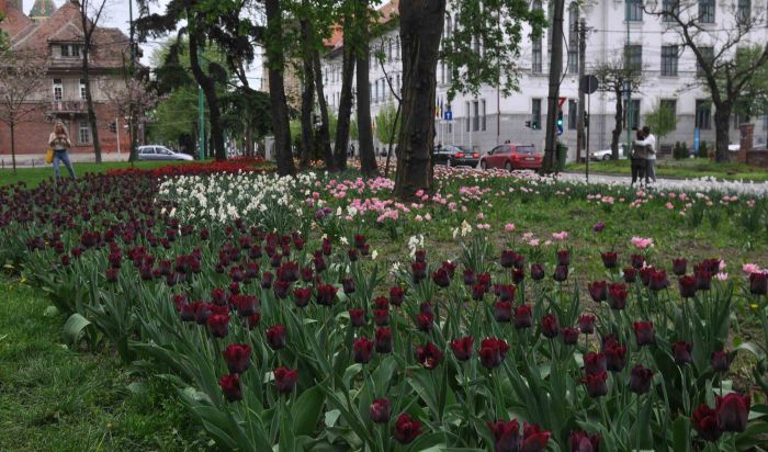 TIMISOARA. La Timisoara, ca la Amsterdam. Explozia de lalele inflorite a pus stapanire mai ales pe zona centrala a orasului, iar culorile vii contrasteaza puternic cu fatadele inca scorojite.