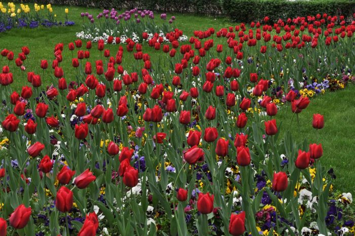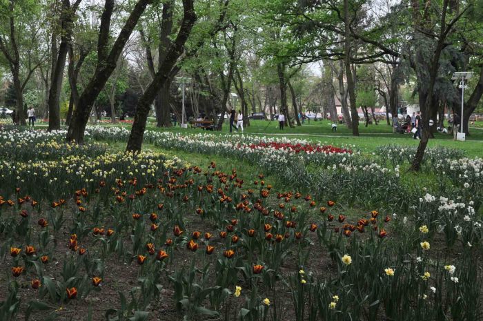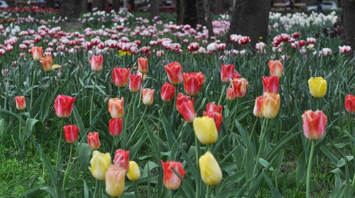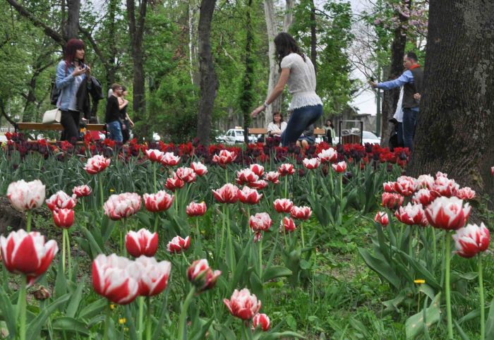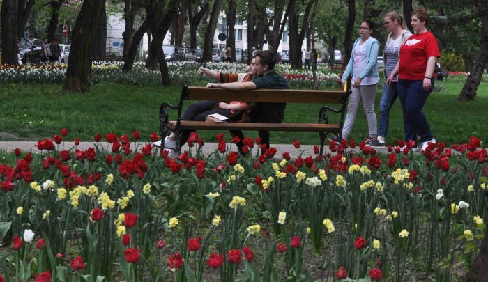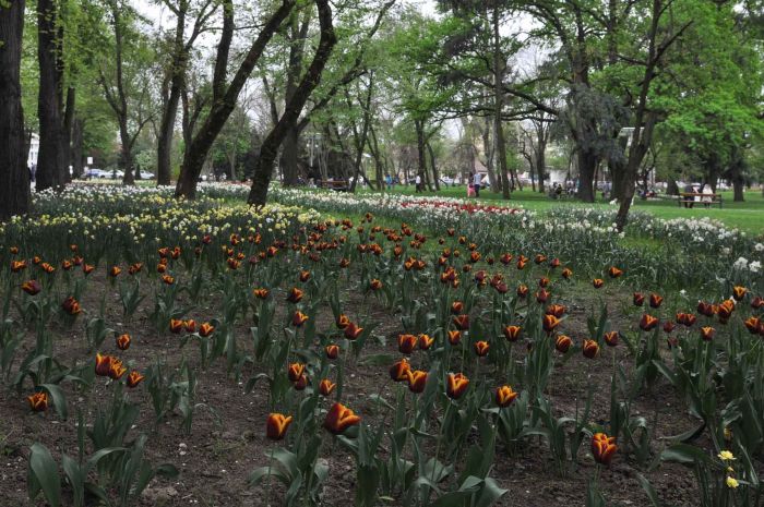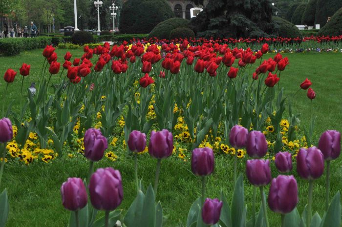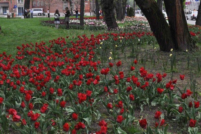 In Piata Victoriei, s-au grabit sa infloreasca lalele galbene din vecinatatea Monumentului Eroilor aflat peste drum de Catedrala Mitropolitana, dar si cele rosii dinspre Palatul Culturii.