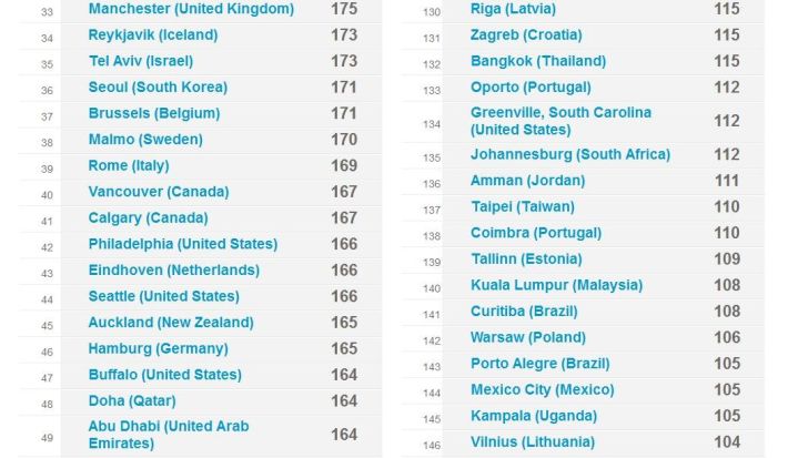 Specialistii au stabilit cate un punctaj pentru fiecare localitate, luand ca oras de referinta Praga. Timisoara este sub Praga, care se afla la acelasi nivel cu Budapesta. Belgrad si Bucuresti au insa acelasi punctaj. Topul arata ca viata in Cluj-Napoca este putin mai scumpa decat cea din Timisoara, orasele fiind insa unul dupa altul in topul celor mai scumpe localitati ale lumii. Suntem pe locul 172, singurul oras roman care apare dupa noi fiind Brasov, pe locul 176. Si Chisinau, din Moldova, se afla in top, pe locul 185.