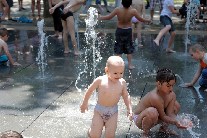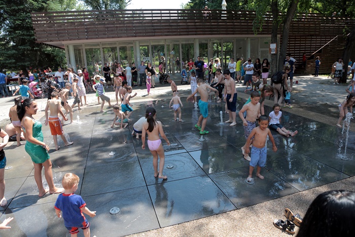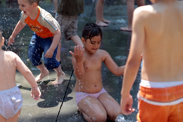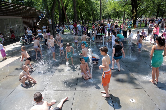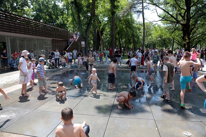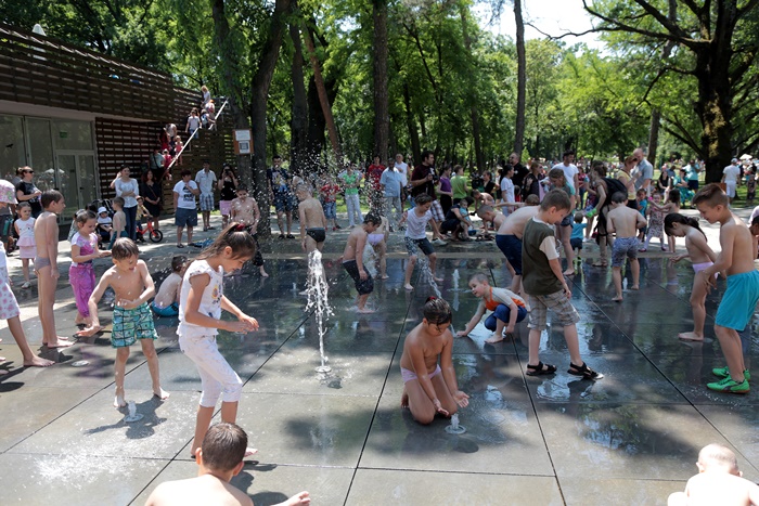 Distractie mare a fost si la fantana cu tasnitori, unde copiii s-au racorit, dupa ce s-au incins alergand prin intreg parcul.
