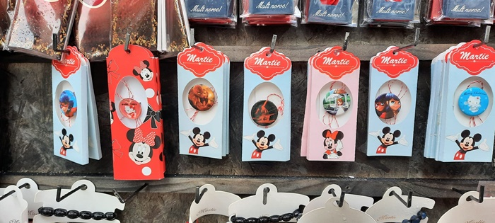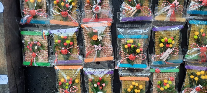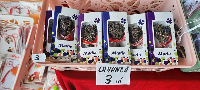 TIMISOARA. Martisoare cu flori, lavanda, motive populare sau personaje din desene animate, expuse de comercianti la Timisoara.