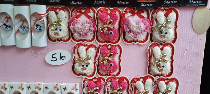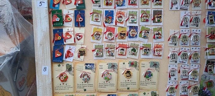 Pe tarabe si-au gasit loc martisoare cu flori, buburuze, diferite personaje, bufnite, iepurasi sau motive populare. Nu lipsesc insa nici inimioarele ori bijuteriile hand-made.