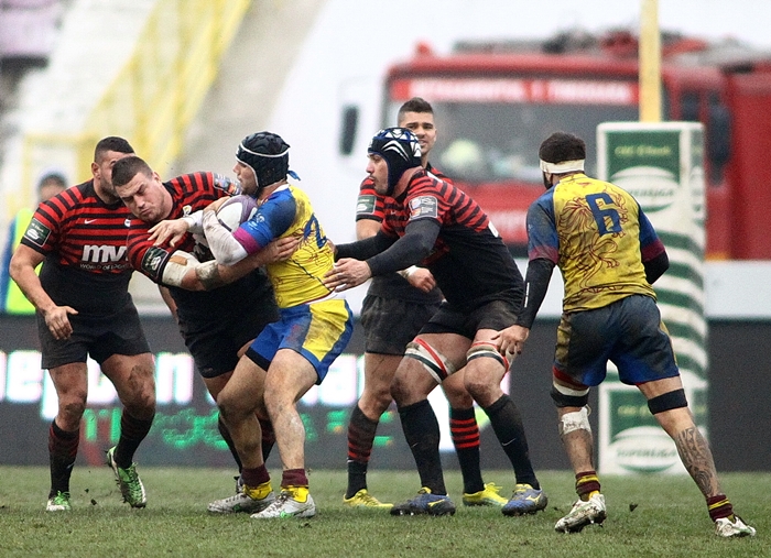 TIMISOARA. O noua lectie europeana predata de campionna Romaniei la rugby, Timisoara Sarcens. Dupa victoriile la scor de la Valladolid si de acasa cu Rovigo, premianta in Italia, trupa banateana a „trantit la pamant”, o alta grupare din „Cizma”, Roma, pe care a invins-o clar, 35-14, scorul la un moment dat fiind 35-0!!