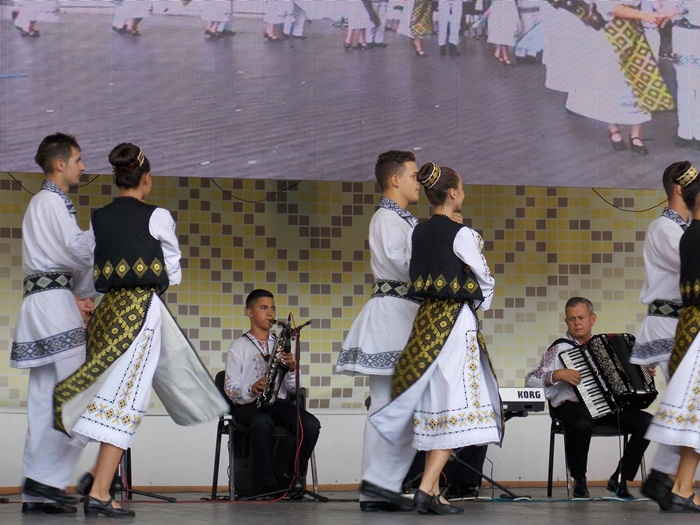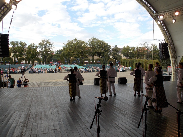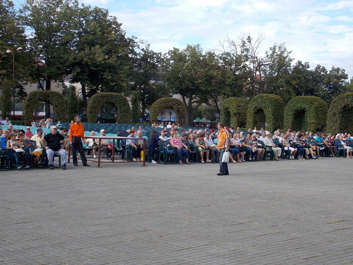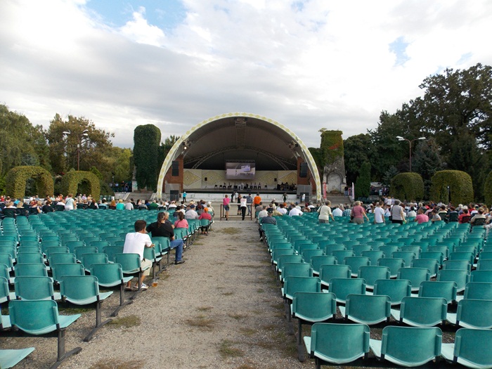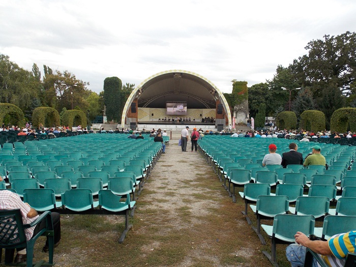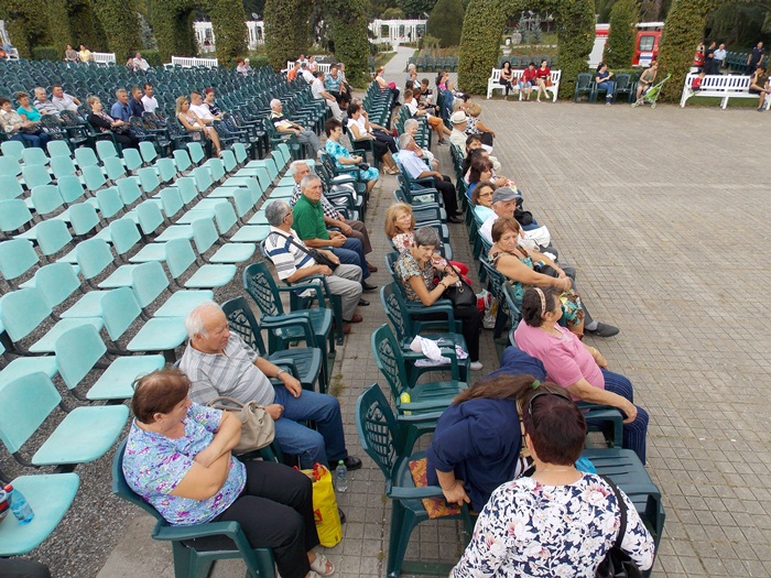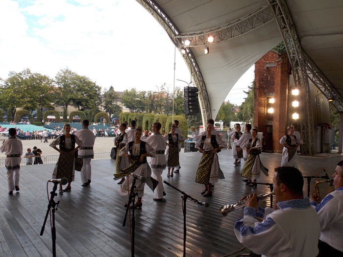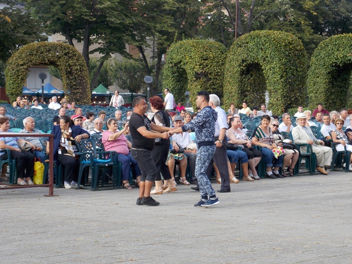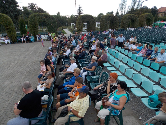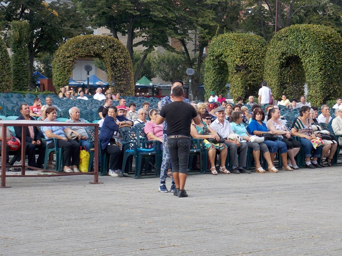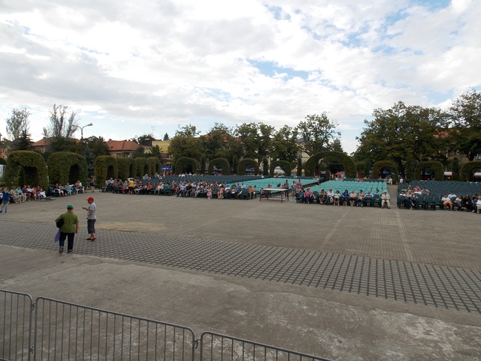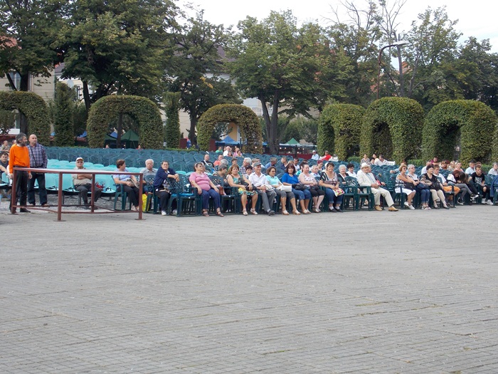 TIMISOARA. Ruga Timisoarei a incept cu putini spectatori pe scaunele din Parcul Rozelor, insa odata ce solistii si dansatorii au intrat rand pe rand pe scena, a inceput sa creasca si numarul privitorilor.