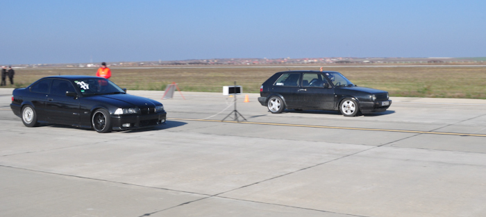 40 de vitezomani si-au prezentat duminica, la linia de start, pe una din bretelele de acces ale Aeroportlui International “Traian Vuia” din Timisoara si, de fata cu politistii, au apasat pedala acceleratiei la maxim. Cursele simultane disputate pe traseul cu o lungime de 402 metri au facut si deliciul spectatorilor veniti in numar destul de mare sa urmereasca renumitele ”liniute”. Participantii au fost impartiti pe trei grupe, in functie de capacitatea cilindrica a masinilor. S-au disputat calificari, semifinale si finale, la fiecare categorie, desemnandu-se, in final, trei castigatori, care au primit cupe si diplome de la organizatori.
