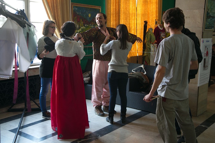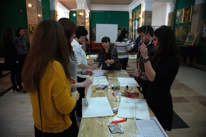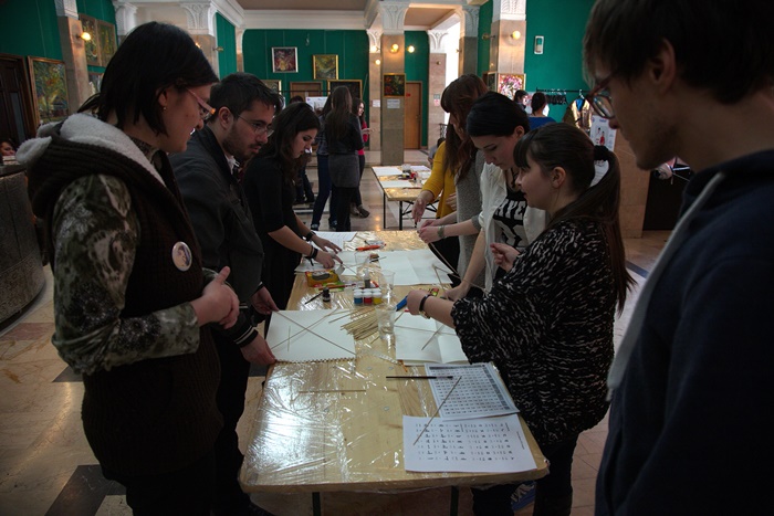 Timisorenii au fost intampinati cu hartie, lipici si fel de fel de ustensile necesare confectionarii zmeelor, atat de populare in Coreea in foaierul Filarmonicii. Ei au avut astfel ocazia sa cunoasca intreaga cultura coreeana deoarece au invatat si scrierea folosita in aceasta tara, dar au putut vedea si chiar imbraca portul traditional.