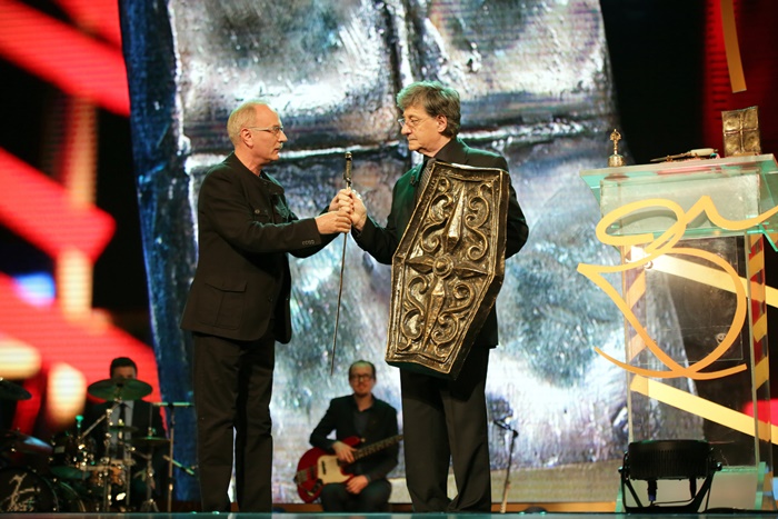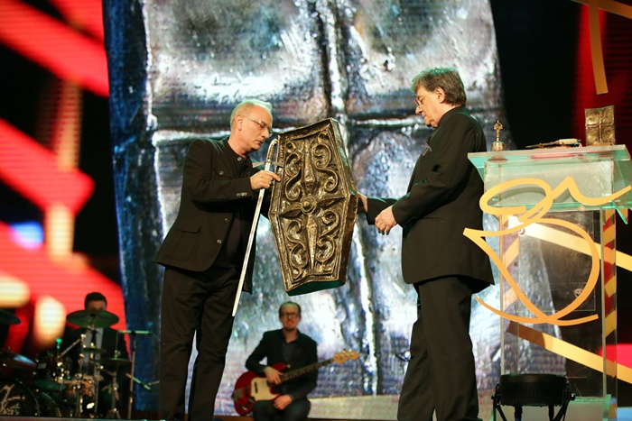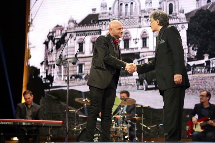 Nicolae Robu, Primarul Timisoarei, i-a acordat lui Ion Caramitru o diploma de excelenta din partea municipiului Timisoara, la 25 de ani de Gala UNITER si la 75 de ani de viata.