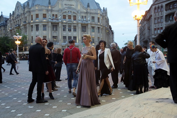 Doamnele si domnisoarele n-au ratat ocazia de a-si pune in valoare cele mai fermecatoare rochii din garderoba si cele mai potrivite accesorii si s-au straduit sa fie la inaltimea evenimentului. De remarcat ca nici domnii nu s-au lasat mai prejos afisand de la costume elegante pana la haine extravagante, in ton cu sarbatoarea teatrului.
