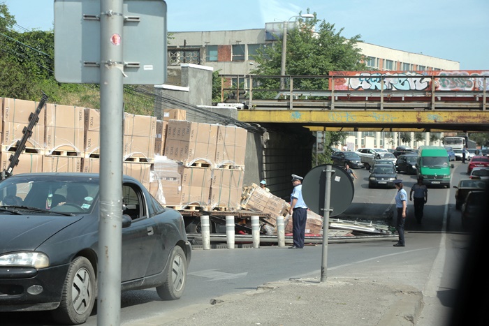 CITESTE SI: Pasajul Jiul din Timisoara a facut o noua victima! In ce hal si-a distrus un sofer TIR-ul. FOTO!