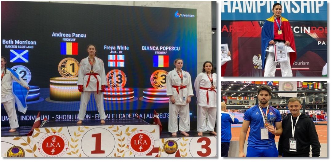 TIMIS. Sportivii de la cluburi din Timișoara și Ghiroda s-au întors cu titluri europene la karate, dar și prezențe pe podium de la două concursuri continentale desfășurate în Polonia și Letonia.