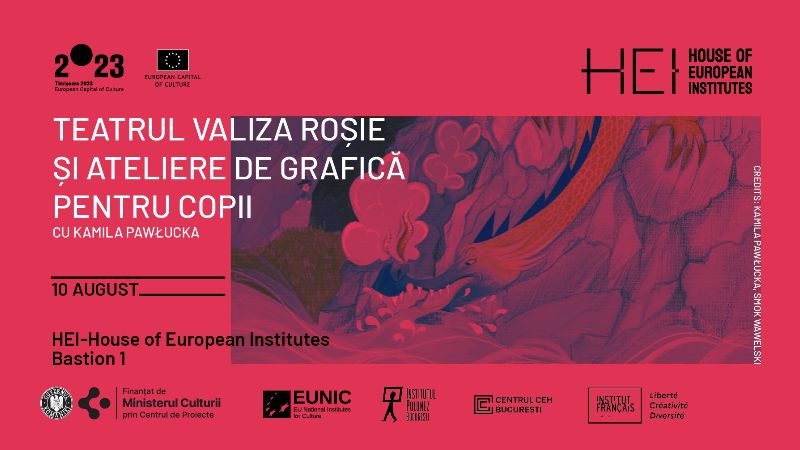 Teatrul Valiza Roșie este construit în jurul unui personaj clovn și se inspiră din tradiția teatrului de improvizație, Noului Circ și teatrului de obiecte. Spectacolele sale implică publicul de toate vârstele și folosește limbajul pantomimei. Atelierul de grafică va fi susținut de Kamila Pawłucka-Górecka, o artistă poloneză specializată în ilustrații de cărți pentru copii.