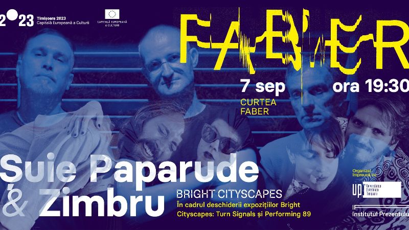 UPT și Institutul Prezentului te invită la un concert cu Șuie Paparude, cu trupa Zimbru în deschidere. Concertul marchează deschiderea expozițiilor Bright Cityscapes: Semnalizatoare – Designul nu este un Panou de Bord și Performing 89. Hai în curtea Faber să dansezi pe ritmuri punk, electro și indie synth. Intrarea e liberă, deci vino să te bucuri de un mix de artă, design și muzică.