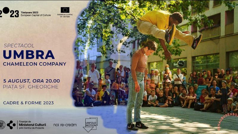 Compania britanică de dans contemporan Chameleon se întoarce în Timișoara cu un nou spectacol stradal, sub forma unui trio puternic și nuanțat, dar în același timp delicat și exploziv. Umbra, un performance dinamic și teatral, pune sub lumina reflectoarelor teme precum excluziunea socială, dorința de înțelegere și de a fi înțeles. Specatcolul este adus în Timișoara la inițiativa coregrafei Lavinia Urcan și face parte din Cadre & Forme – program de dans complex, dezvoltat de asociațiile Noi Re-Creăm și Unfold Motion.