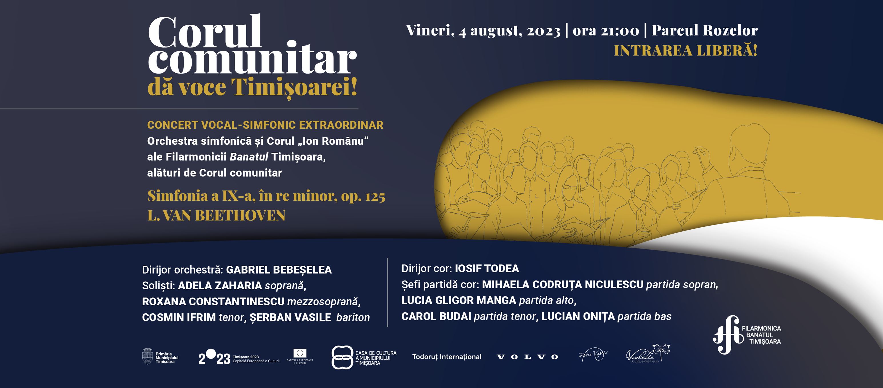 Corul comunitar este un proiect unic în România, în care actul artistic presupune și implicarea comunității locale. Corul comunitar va debuta vineri, într-un concert în care va fi interpretată Simfonia a IX-a în re minor, op. 125 de Ludwig van Beethoven. Pe scenă vor urca peste 300 de oameni: artiști din orchestra simfonică și corul „Ion Românu” ale Filarmonicii Banatul și locuitori ai orașului.
