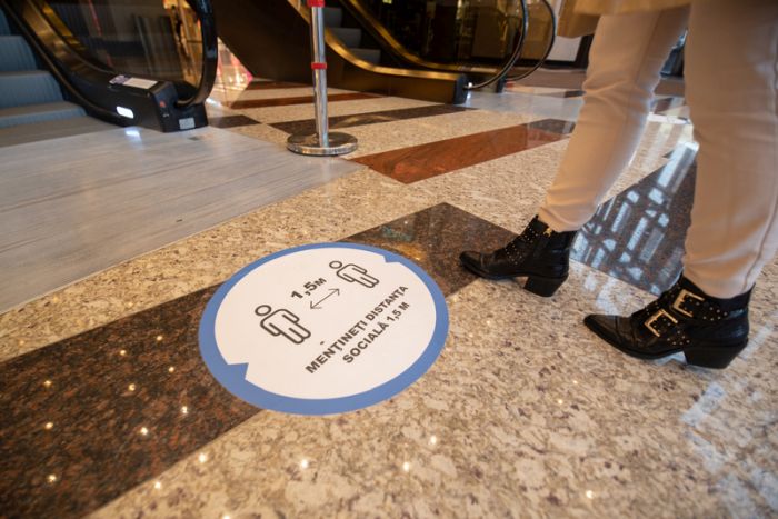 Pentru menținerea distanțării fizice, este implementat un sistem de tracking, care permite raportarea densității în timp real, și acces video online pentru vizualizarea gradului de ocupare pentru mall și parc, capacitatea lifturilor este limitată, fluxul pe scările rulante și fixe este diferențiat pentru urcare/coborâre, iar în zonele de așteptare există semnalistică ce evidențiază păstrarea distanței.