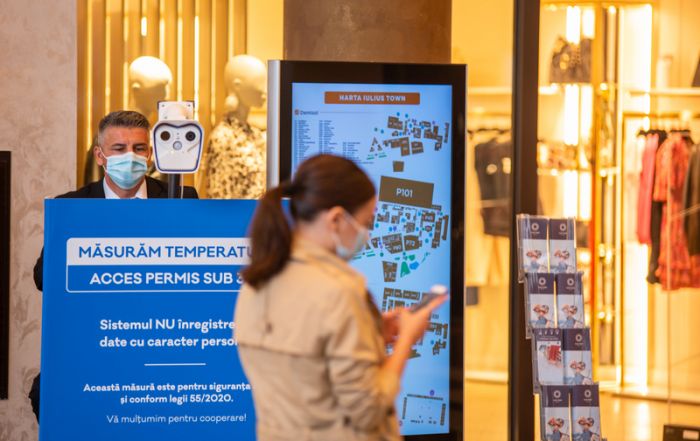 Compania IULIUS propune un pachet de peste 40 de acțiuni de prevenire și măsuri de distanțare fizică implementate în rețeaua națională de mall-uri. Fluxurile de intrare/ieșire sunt reorganizate diferențiat, iar la intrare sunt termoscannere pentru monitorizarea temperaturii, covoare profesionale impregnate cu substanțe active, dispensere cu dezinfectant și personal instruit pentru a monitoriza respectarea normelor de siguranță. Accesul este permis doar cu purtarea măștii de protecție, iar la intrări sunt amplasate automate de vending cu mănuși, măști și dezinfectant.