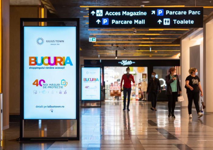 TIMISOARA. Prima zi după reluarea activității în Iulius Town Timișoara a trasat o nouă direcție pentru shopping, definită de precauție. Toate magazinele din proiectul mixt și-au reluat activitatea. Măsurile de siguranță includ de la acțiuni permanente de dezinfecție, implementarea unui program de traking în mall și sistem video online de verificare a gradului de ocupare, până la reorganizarea fluxurilor de acces, optimizarea calității aerului și purtarea obligatorie a măștilor.