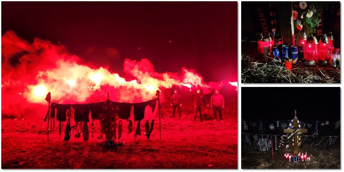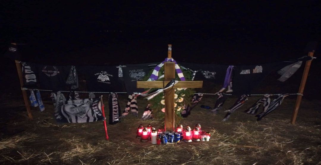 Suporterii alb-violeți au aprins torțe și candele, au depus o coroană de flori și câteva beri la altarul care marchează locul în care s-a produs teribilul accident.