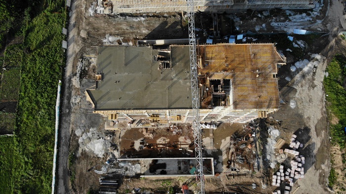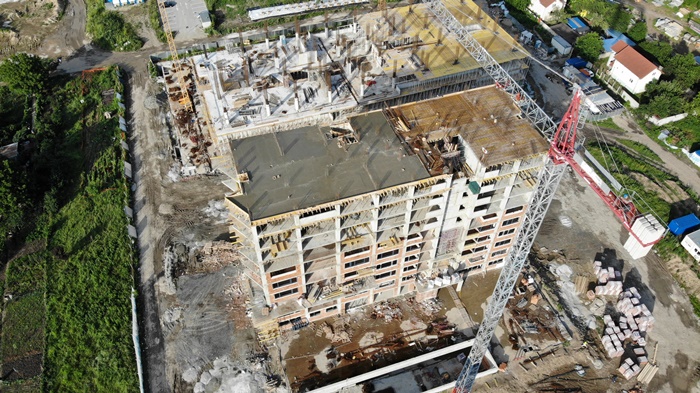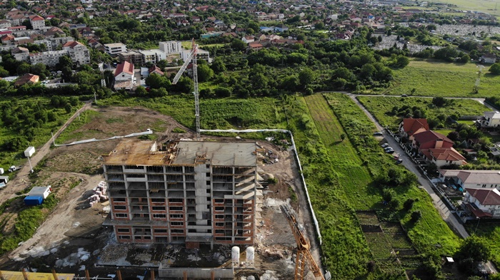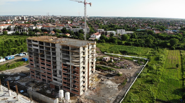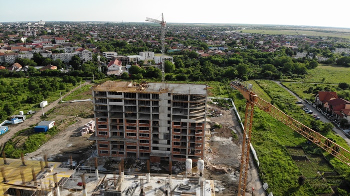 Construcția proiectului a ajuns la etajul 10, iar partea de zidărie avansează cu forță, în paralel, la etajele 6 și 7. Se lucrează deja la instalațiile electrice de la etajul 4, în vreme ce lucrările la partea de tâmplărie depășesc deja etajul 3.