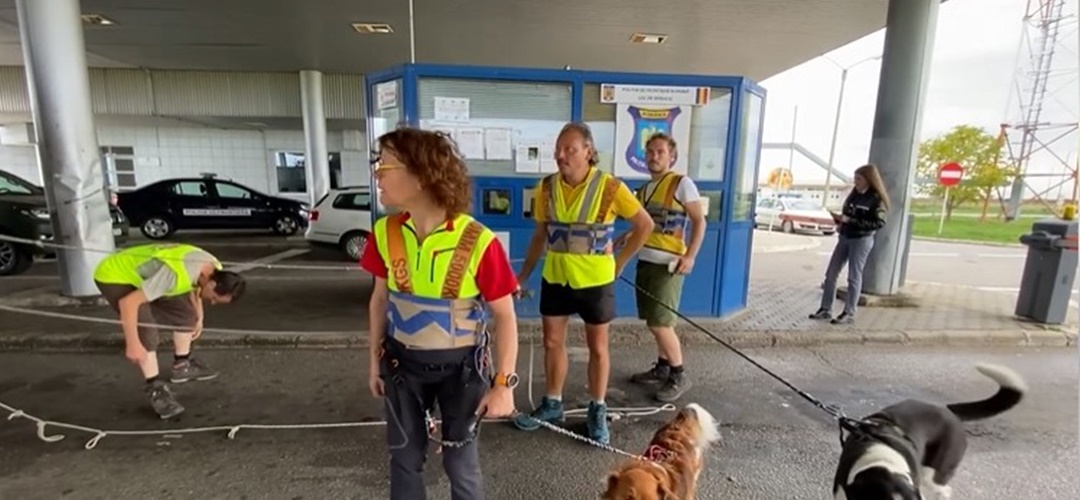 Landschip, adica nava terestra, un vehicul cu roti imense, tras sau impins de mai multi artisti, a intrat in Romania prin punctul de trecere a frontierei de la Cenad.