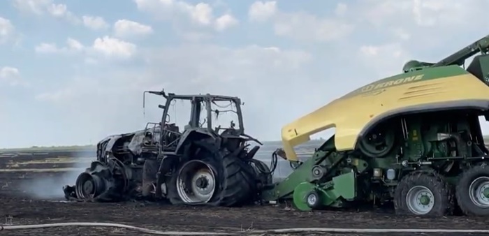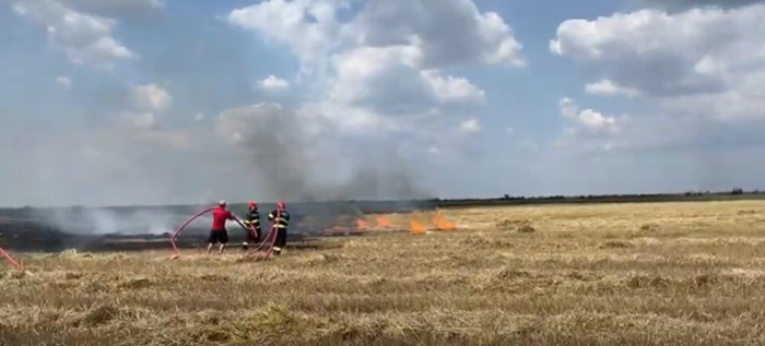 Salvatorii au reusit sa stinga flacarile la utilajul de strans paie, insa tractorul s-a facut scrum, iar intre timp au incercat sa opreasca si extinderea focului pe miriste.