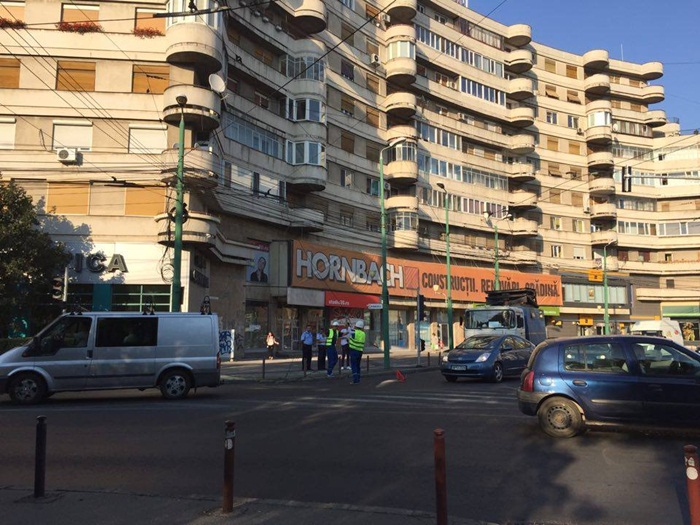 Traficul in zona Pietei Marasti se desfasoara cu dificultate deocamdata deoarece masina de interventie a regiei de transport ocupa o banda in sensul giratoriu. Circulatia troleibuzelor 14, 17 si 18, care trec prin aceasta zona nu a fost oprita, deoarece acestea au oarecare autonomie si pot functiona o perioada si fara a folosi cablurile de alimentare. Politistii de la Sectia 1 au venit si ei in intersectie pentru a da o mana de ajutor la dirijarea traficului rutier.