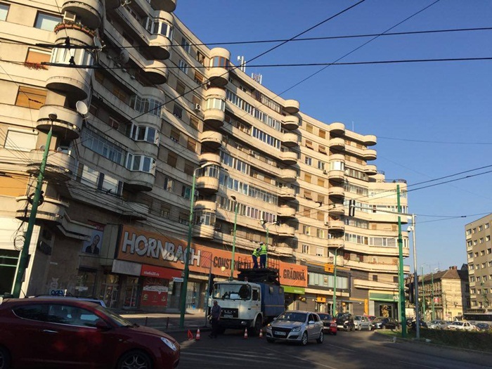 TIMISOARA. Interventie in Piata Marasti din Timisoara, unde un cablu RATT de alimentare pentru troleibuze s-a rupt. Echipajele regiei de transport au venit la fata locului cu o autospeciala si se straduiesc sa remedieze defectiunea.
