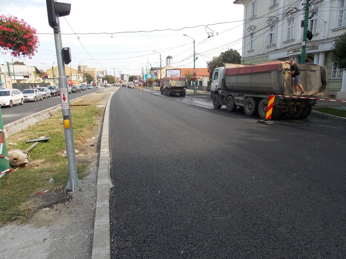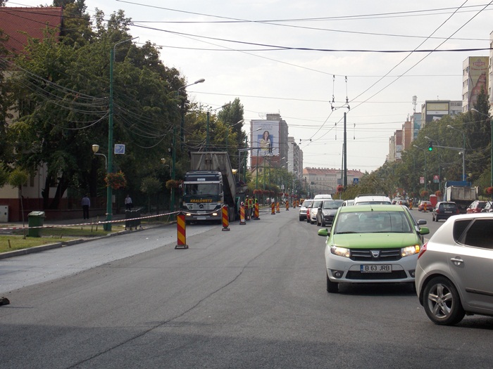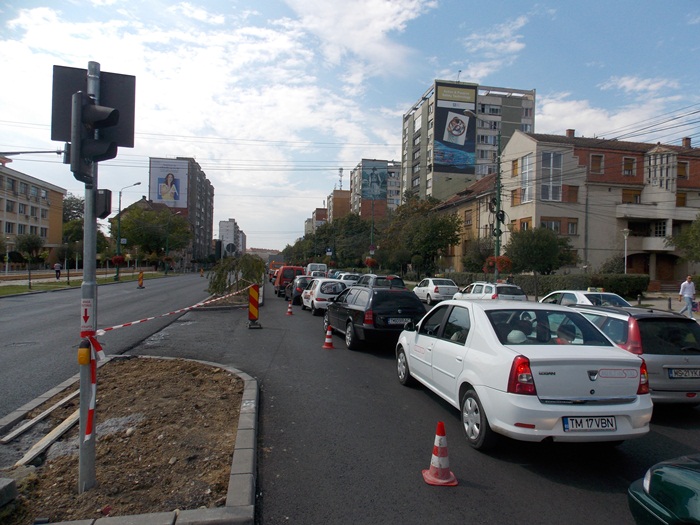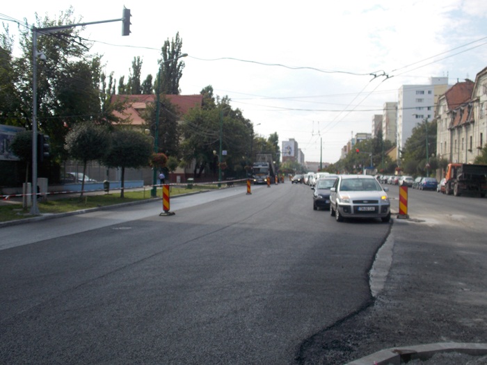 Muncitorii dau zor sa ispraveasca pana diseara asezarea ultimului strat in directia dinspre Punctele Cardinale catre sediul Politiei Judetene. In acest sens se circula pe o singura banda si au fost inchise temporar strazile Filipescu si Dimitrie Gusti, perpendiculare pe bulevard, insa Primaria Timisoara nu s-a invrednicit sa ii anunte pe soferi.
