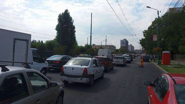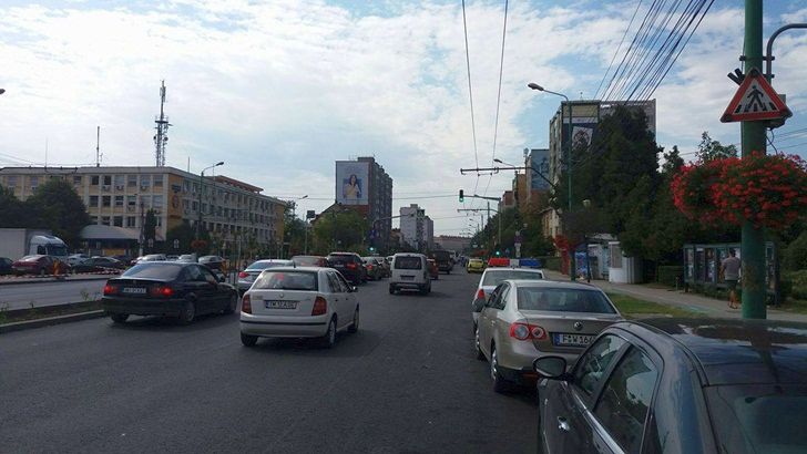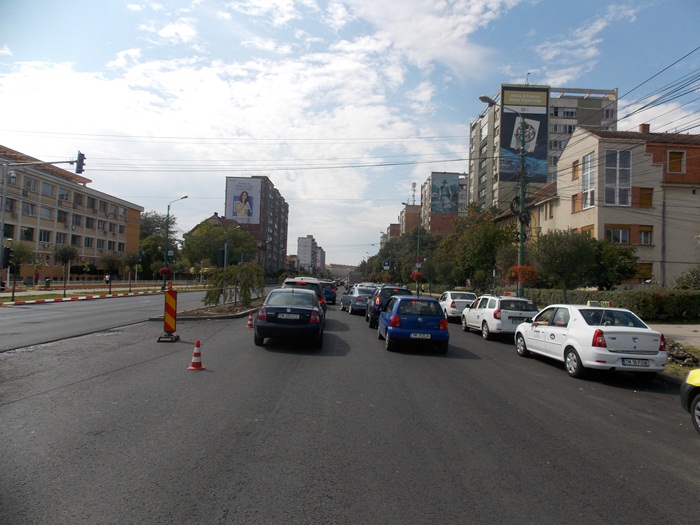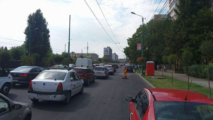TIMISOARA. Cozi interminabile de masini pe bulevardul Take Ionescu din Timisoara unde se lucreaza la ultima asfaltare.