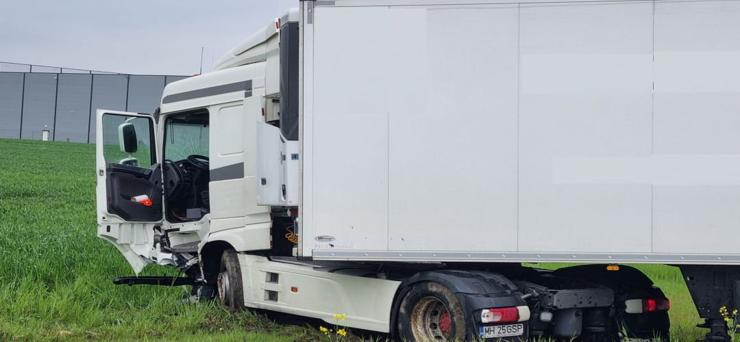 Dupa ce a fost evaluat medical la fata locului, soferul tirului a refuzat transportul la spital, iar femeia care il insotea in cabina a scapat teafara si nevatamata.