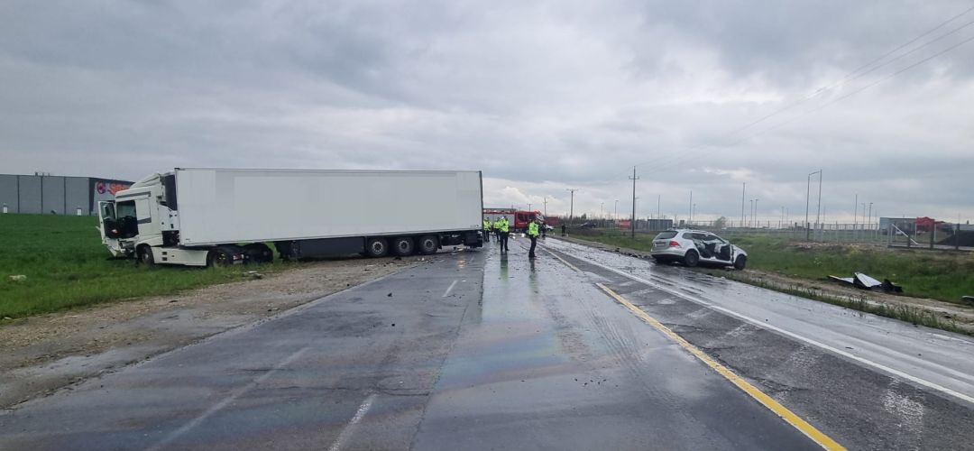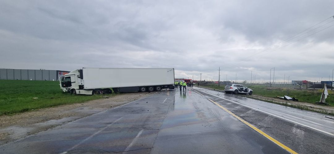 Doi oameni au murit, dupa ce masina in care se aflau a fost lovita in plin de un tir, intre localitatile Dumbravita si Giarmata.