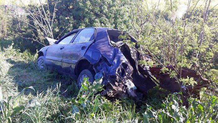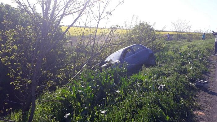Accidentul s-a petrecut intre Sandra si Biled. Soferita a pierdut controlul volanului, iar acesta a zburat de pe sosea in vegetatia de pe marginea soselei.
