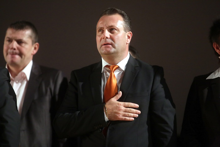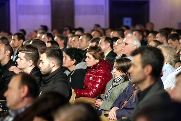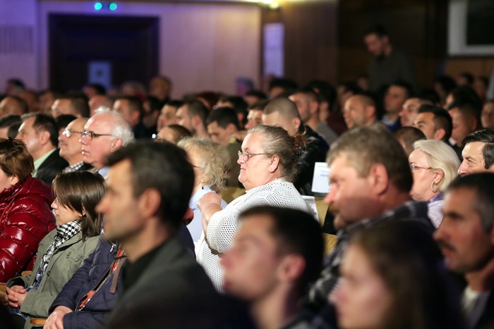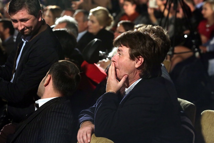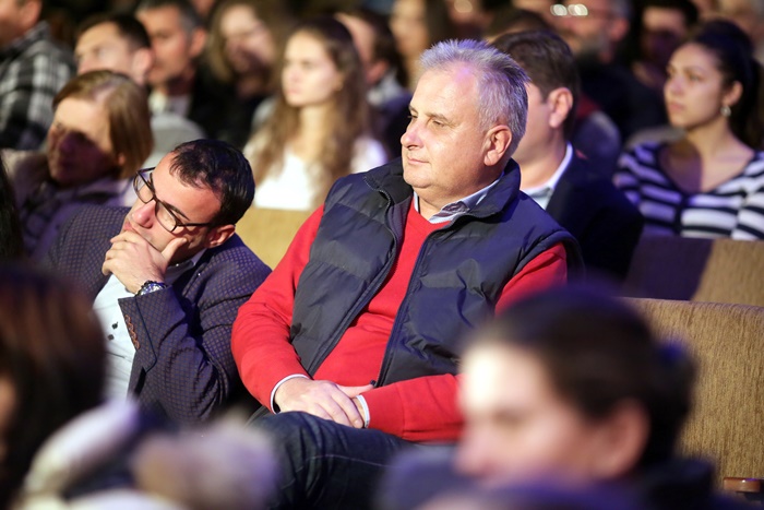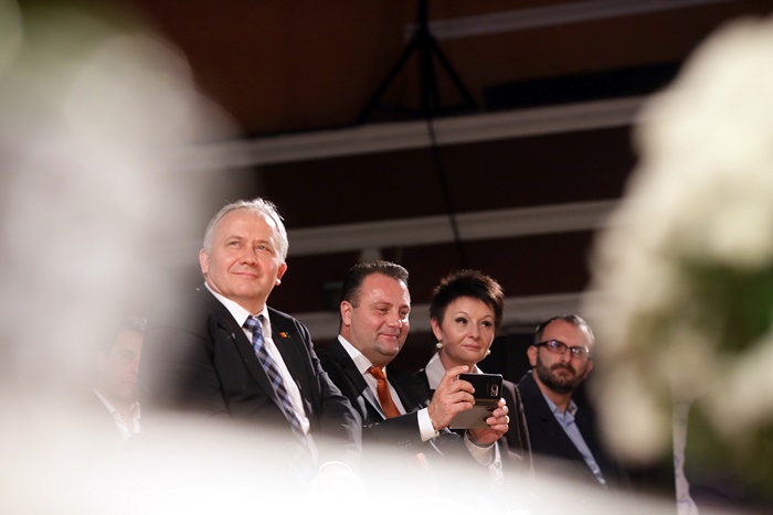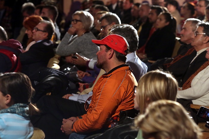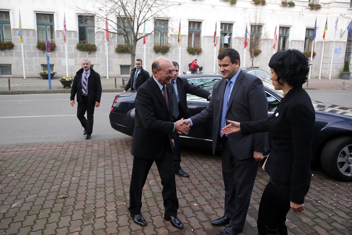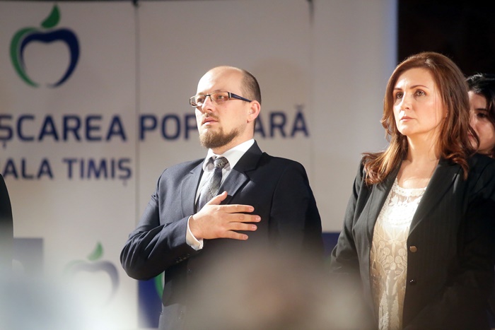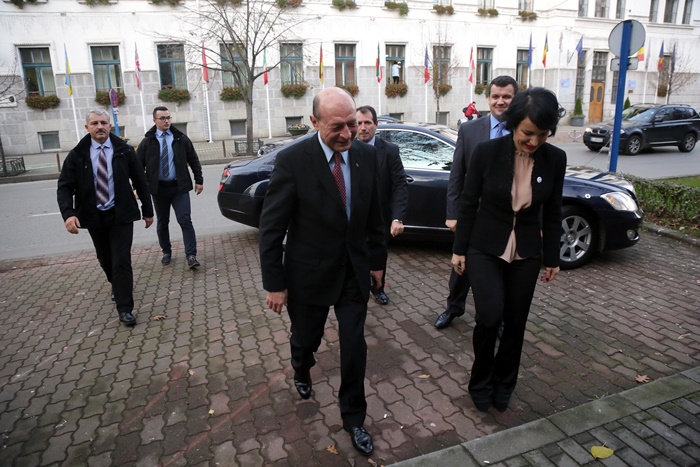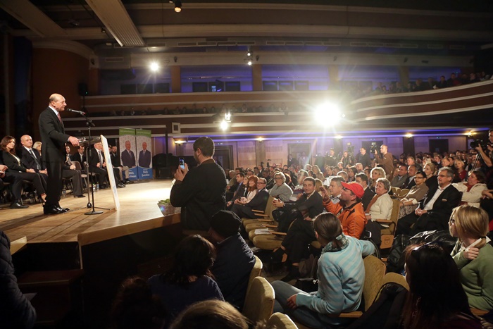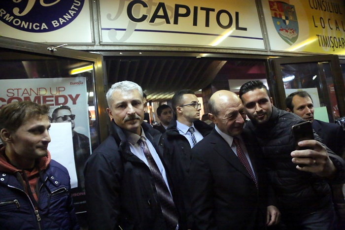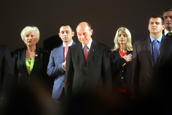 TIMISOARA. Fostul presedinte al Romaniei, Traian Basescu a fost prezent, vineri, la Timisoara, la lansarea candidatilor Partidului Miscarea Populara in sala Capitol a Filarmonicii Banatul.