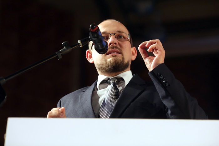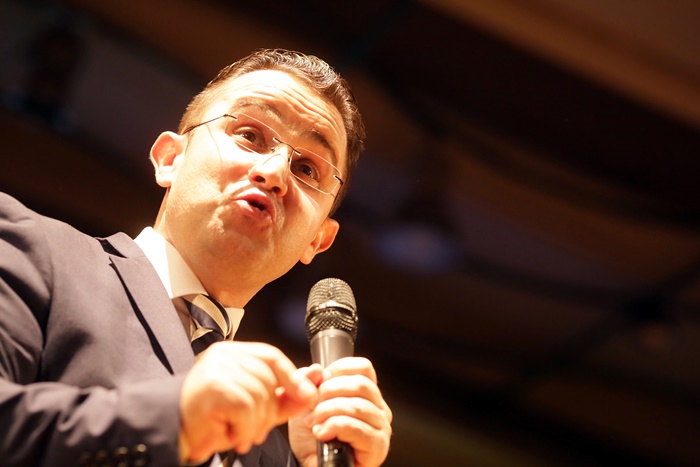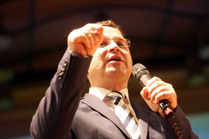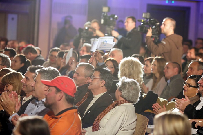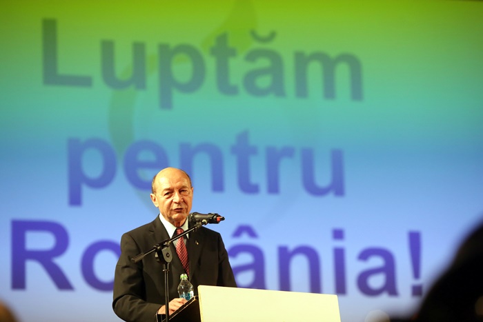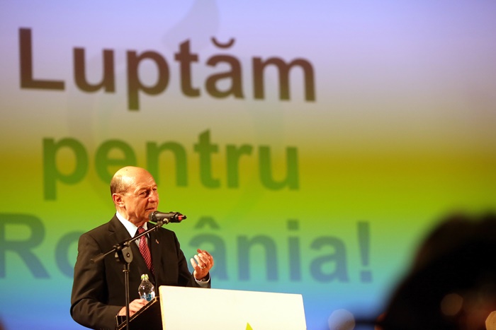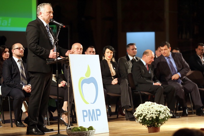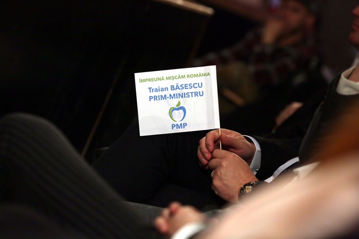 Basescu a spus in discursul sau tinut pe scena, in fata unei sali arhipline, ca PMP exclude orice fel de alianta cu PSD, dupa alegeri.