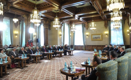 Liderii USL au discutat cu presedintele Traian Basescu la palatul Cotroceni despre reorganizarea judetelor si pe revizuirea Constitutiei. Cei doi lideri din opozitie au cerut alegeri anticipate la sfarsitul acestui an si au propus un guvern tehnocrat.