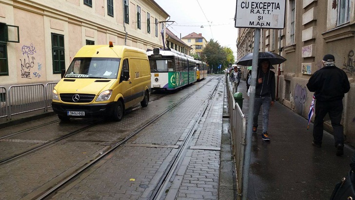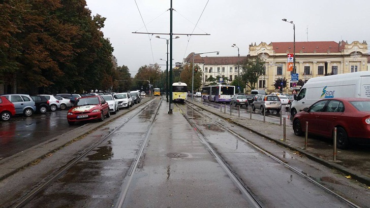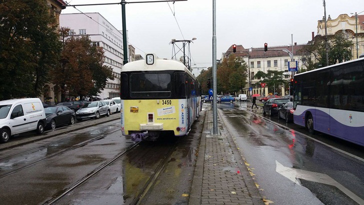 TIMISOARA. Circulatia tramvaielor a fost blocata, pe rand, in mai multe locuri din Timisoara, iar zona centrala e complet paralizata. De vina este o avarie la un fir de curent al ENEL.