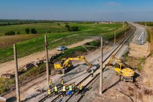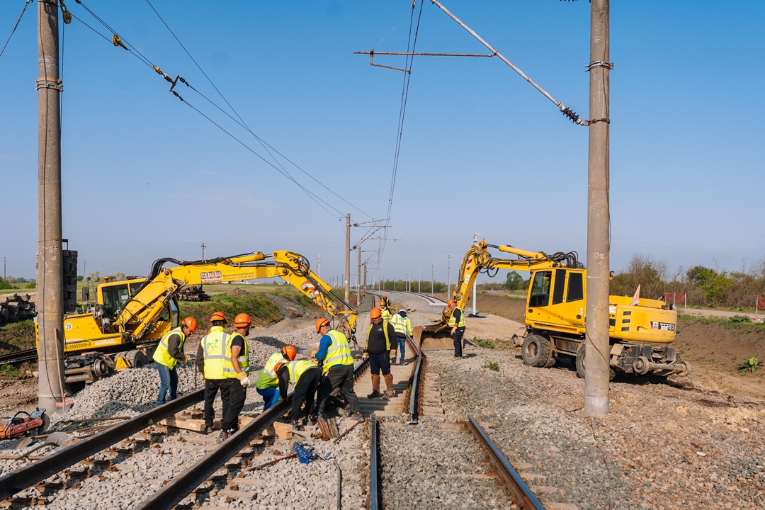 TIMIȘOARA. Pe cel mai avansat lot din magistrala CFR Caransebeș – Lugoj – Timișoara – Arad, care se modernizează, au fost dați în circulație alți aproape 9 kilometri de cale ferată nou-nouță.