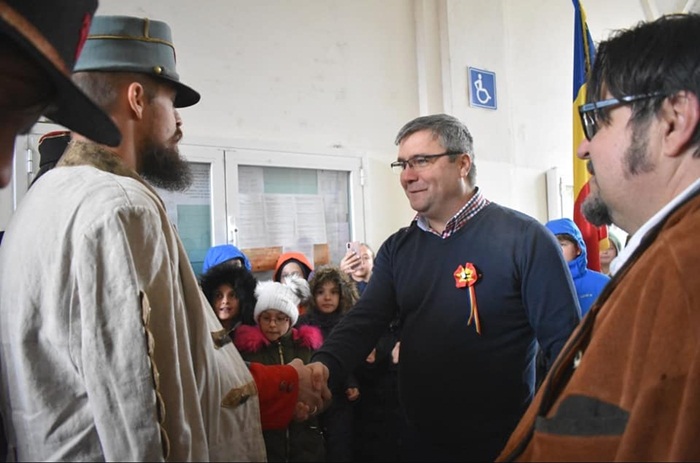dedicate Centenarului. Le-am gandit pe mai multe directii. Spre exemplu, luni elevii au ales sa imparta insemne tricolore tuturor copiilor care se aflau in scoala, mai apoi a avut loc o expozitie de carte istorica si o expozitie de fotografie de epoca. Pe de alta parte, ieri, trupa Peregrini a incantat auditoriul printr-un spectacol intitulat “Venirea Regelui in Timisoara”, un spectacol care a prins foarte bine la copii, si astazi am inceput traditionaloa Hora a Unirii cu un steag desfasurat in curtea scolii, un steag realizat de copii, in care si-au luat fiecare cate o hartie, rosie, galbena sau albastra, si au creat pe terenul de sport o imagine a tricolorului romanesc, urmat mai apoi de Hora Unirii“, a declarat in emisiunea INTERVIURILE TIMISOAREI directorul Colegiului National Banatean, Sorin Ionescu.