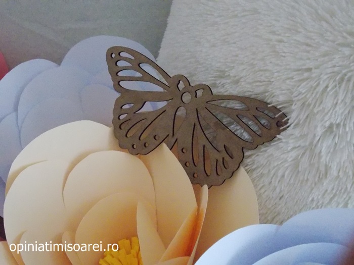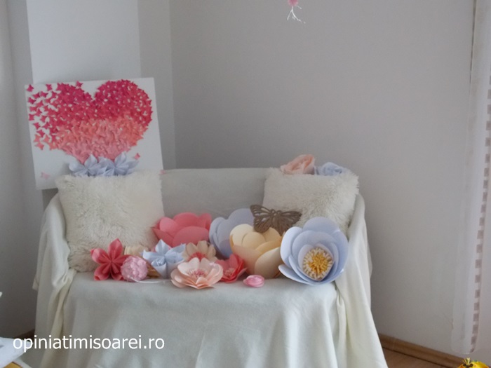 “S-a intamplat sa fiu solicitata de cateva ori pentru decorarea unor buticuri. In urma cu cateva zile m-am ocupat de decorarea unei vitrine a unui butic detinat femeilor si copiilor, la Resita. A fost o explozie de flori, fluturi si avioane, multa veselie“, ne-a declarat Diana.