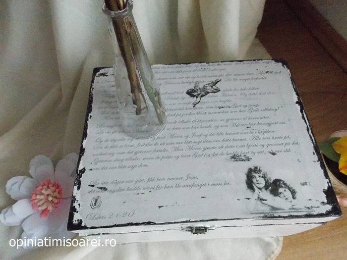 “De-a lungul timpului am redecorat si decorat diverse obiecte: mese, cutii de diferite dimensiuni, cufere, rame foto, oglinzi, diverse obiecte pentru evenimente (nunti, botezuri, majorate)“, ne povesteste Diana.